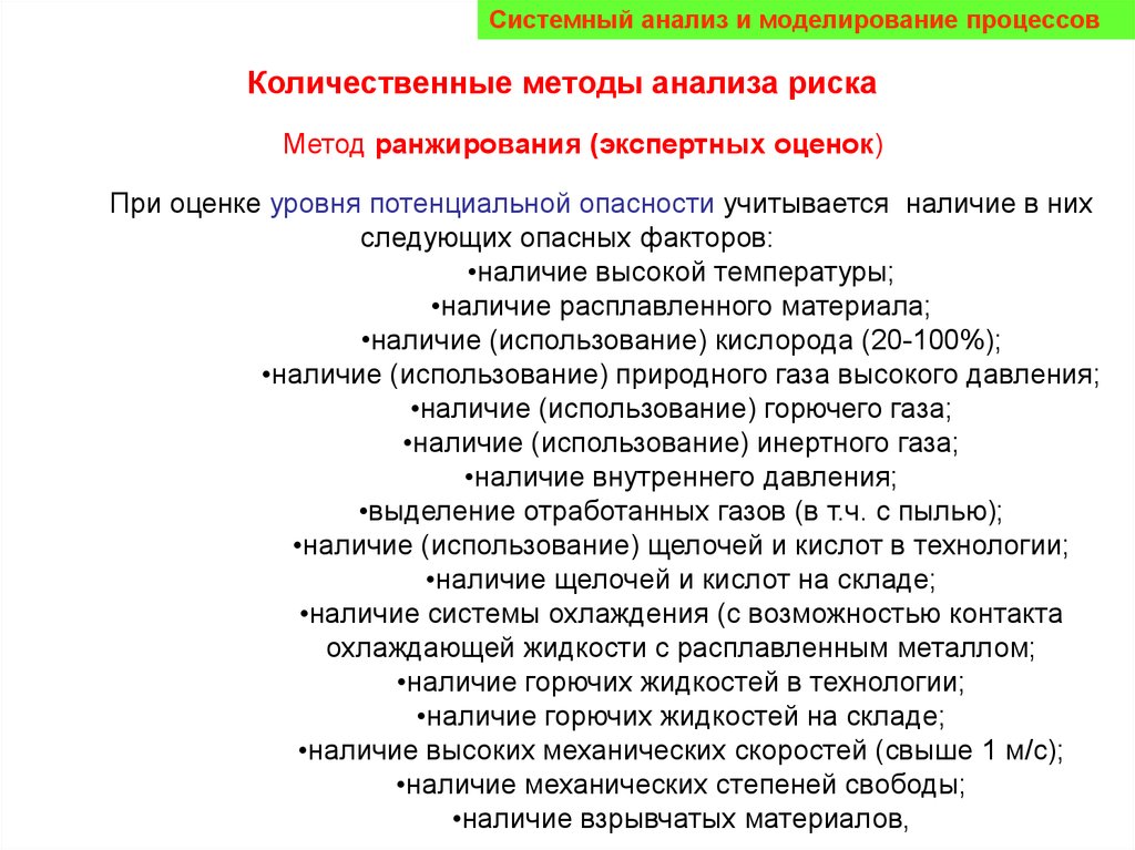 Системный анализ и моделирование процессовКоличественные методы анализа риска