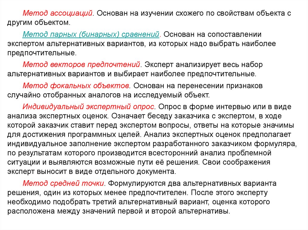 анализа экспертных оценок. Означает беседу заказчика с экспертом, в ходе