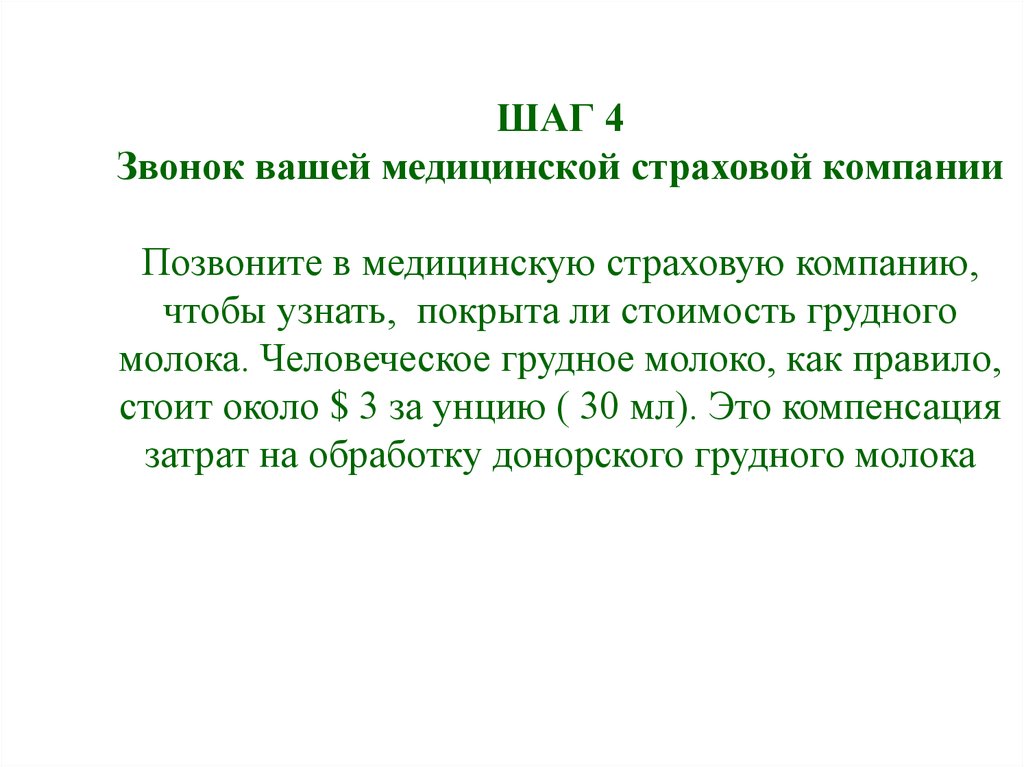 ШАГ 4Звонок вашей медицинской страховой компании