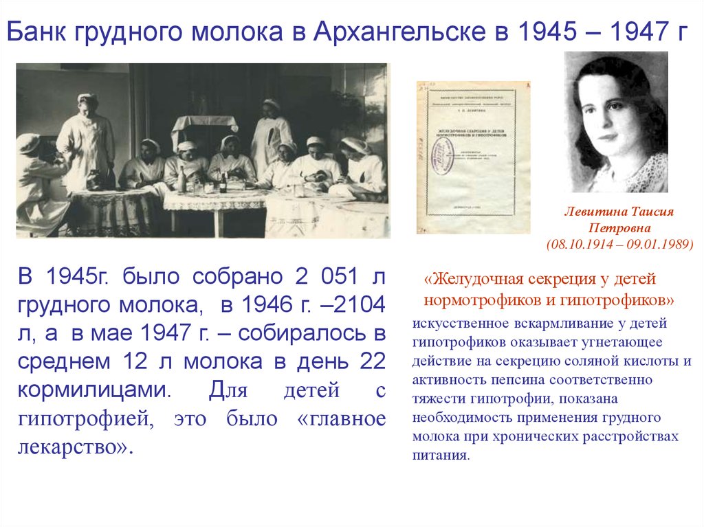 Банк грудного молока в Архангельске в 1945 – 1947 гСбор грудного молока в доме ребенка («ОДР»):