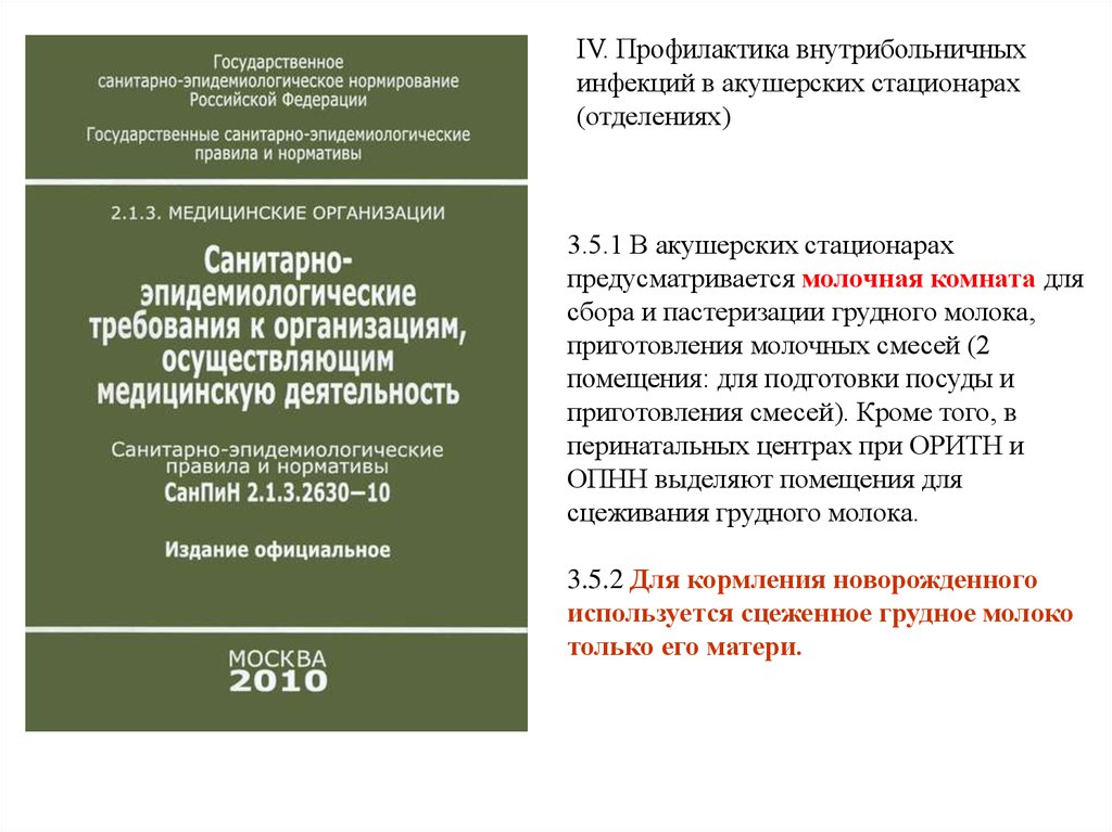 IV. Профилактика внутрибольничныхинфекций в акушерских стационарах