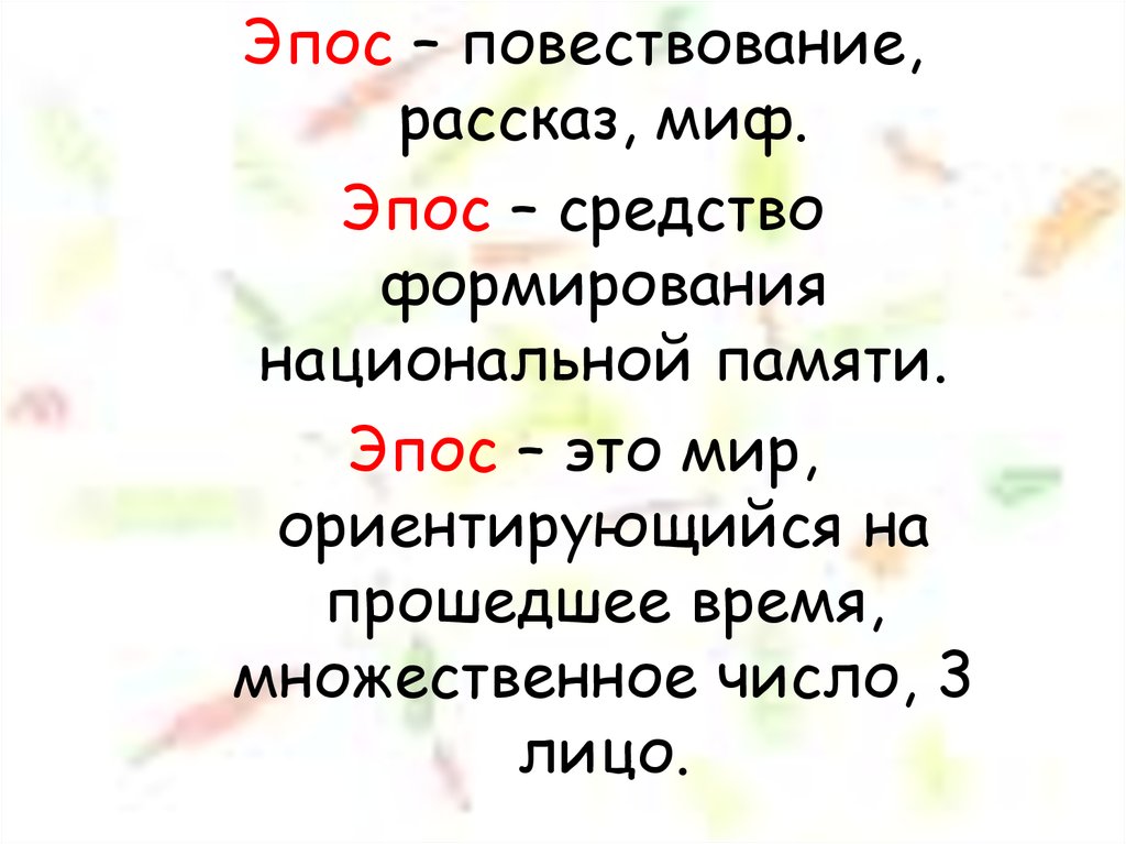 Эпос – повествование,рассказ, миф.