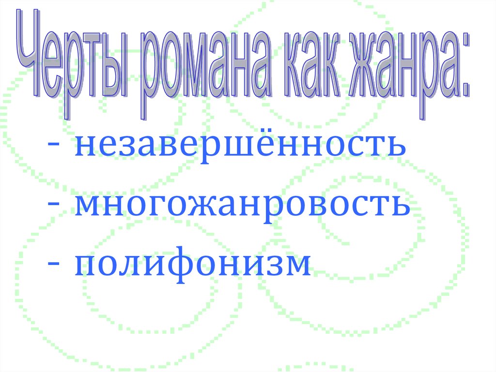 - незавершённость- многожанровость