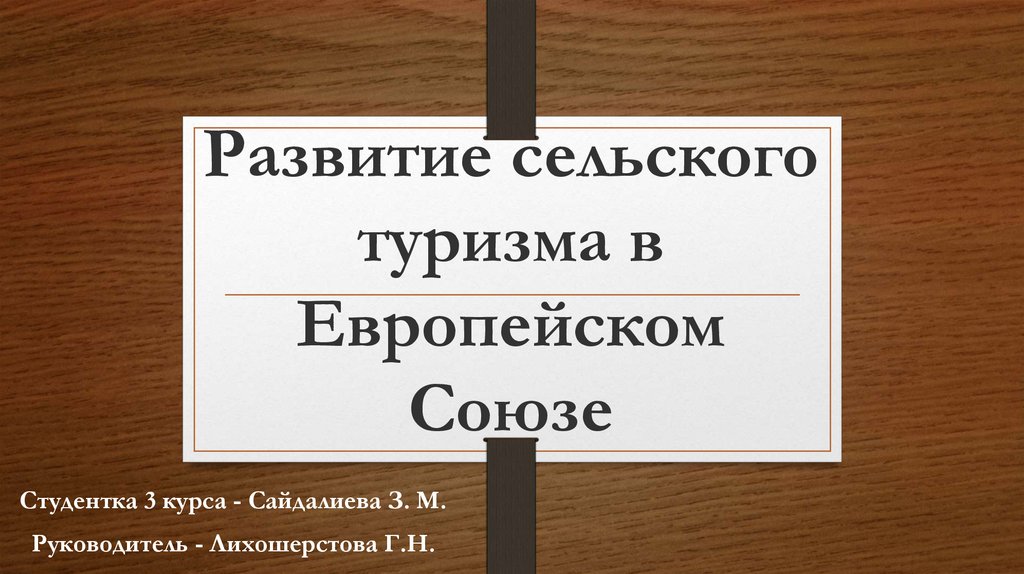 1. Развитие сельского туризма в Европейском Союзе