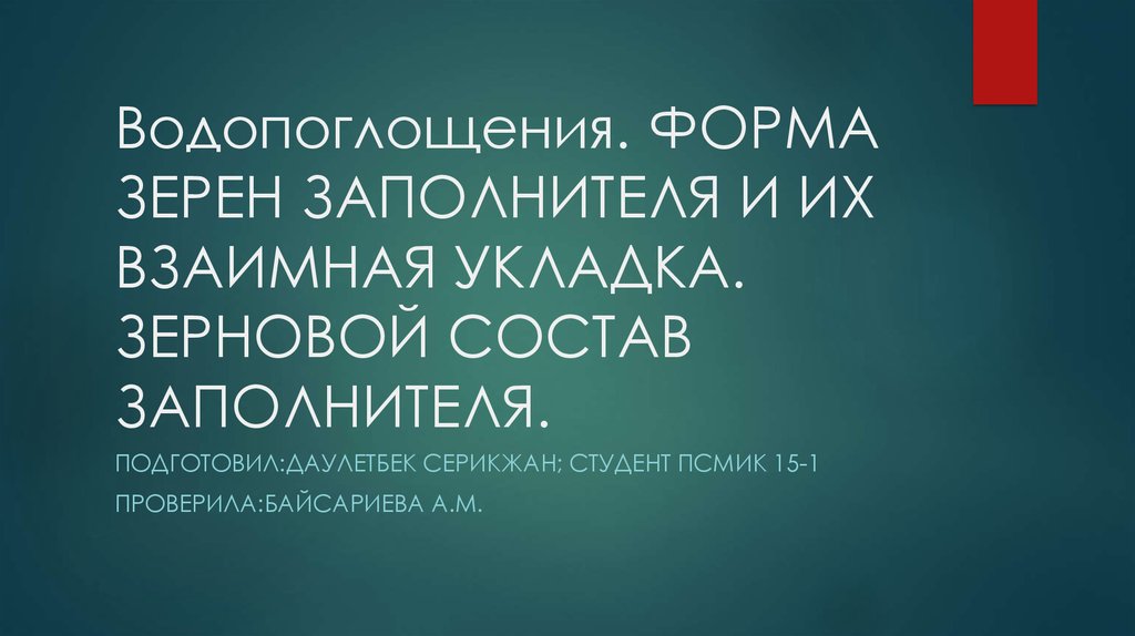 1. Водопоглощения. ФОРМА ЗЕРЕН ЗАПОЛНИТЕЛЯ И ИХ ВЗАИМНАЯ УКЛАДКА. ЗЕРНОВОЙ СОСТАВ ЗАПОЛНИТЕЛЯ.