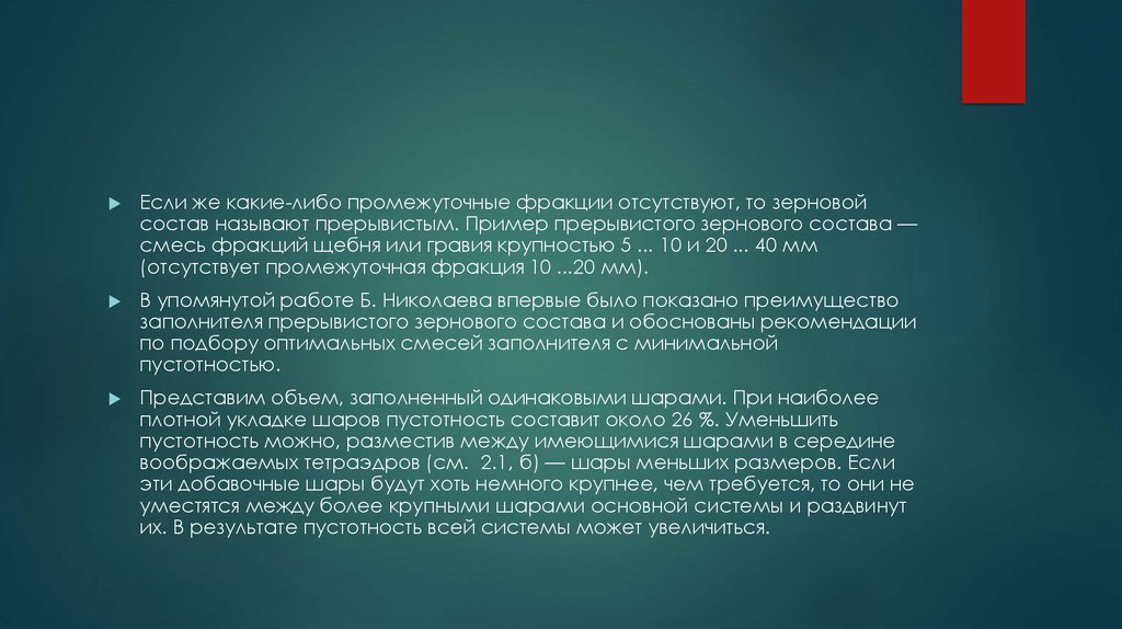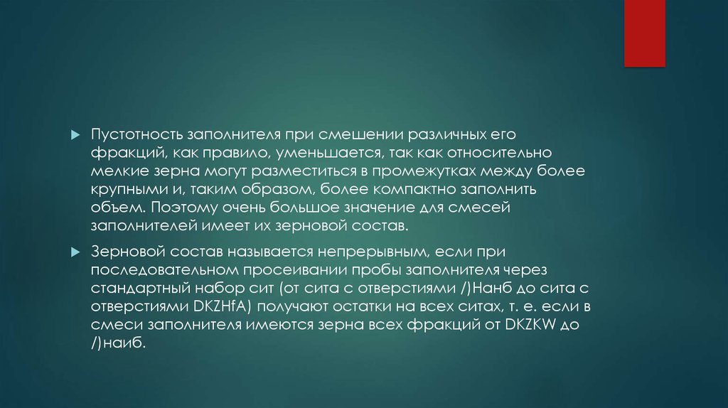 Пустотность заполнителя при смешении различных егофракций, как правило, уменьшается, так как относительно