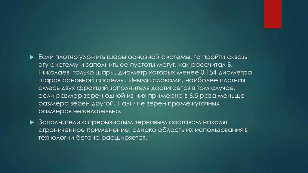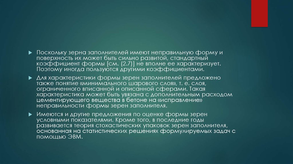 Поскольку зерна заполнителей имеют неправильную форму иповерхность их может быть сильно развитой, стандартный