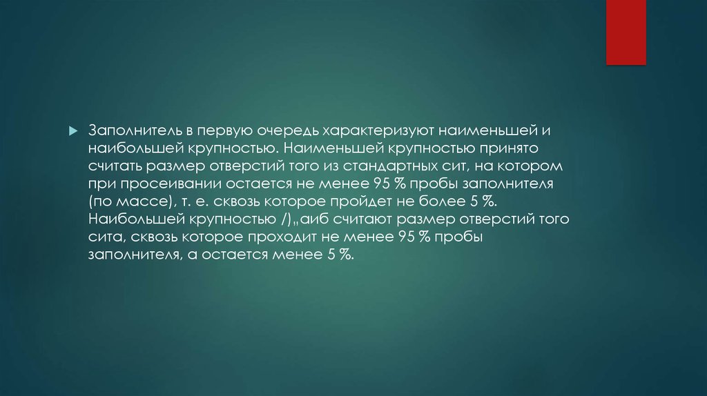 при просеивании остается не менее 95 % пробы заполнителя