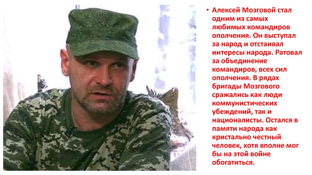 Луганщины.5. Мозговой принял активное участие в протестах на Юго-Востоке, а затем – как лидер ополченцев Луганской области. «Я ушёл на войну