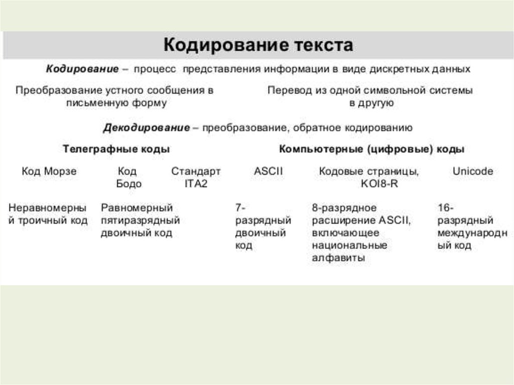 ASCII –American Standard Code for Information Interchange (американский стандарт кодов для