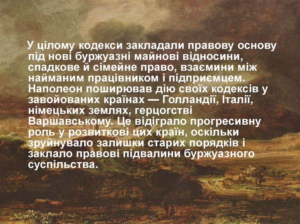 У цілому кодекси закладали правову основупід нові буржуазні майнові відносини,