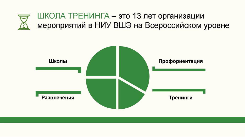 ШКОЛА ТРЕНИНГА – это 13 лет организациимероприятий в НИУ ВШЭ на Всероссийском уровне