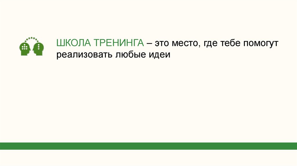 ШКОЛА ТРЕНИНГА – это место, где тебе помогутреализовать любые идеи