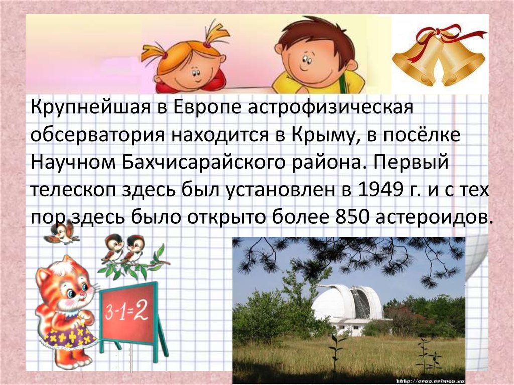 Крупнейшая в Европе астрофизическаяобсерватория находится в Крыму, в посёлке
