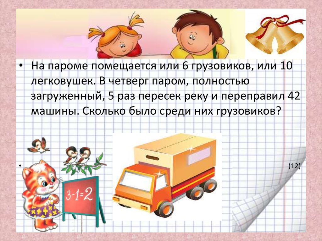 • На пароме помещается или 6 грузовиков, или 10легковушек. В четверг паром, полностью