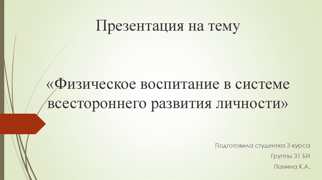 1. Презентация на тему «Физическое воспитание в системе всестороннего развития личности»