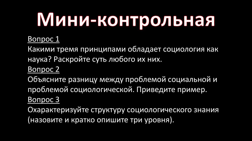 Вопрос 1Какими тремя принципами обладает социология как