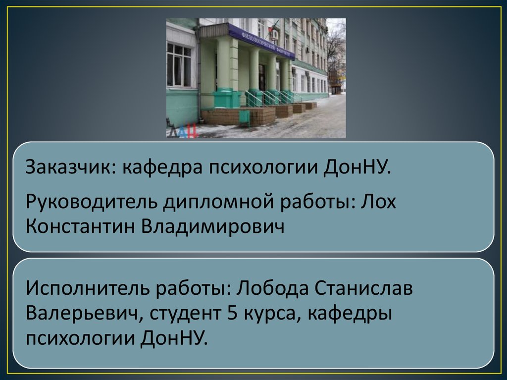 Заказчик: кафедра психологии ДонНУ.Руководитель дипломной работы: Лох