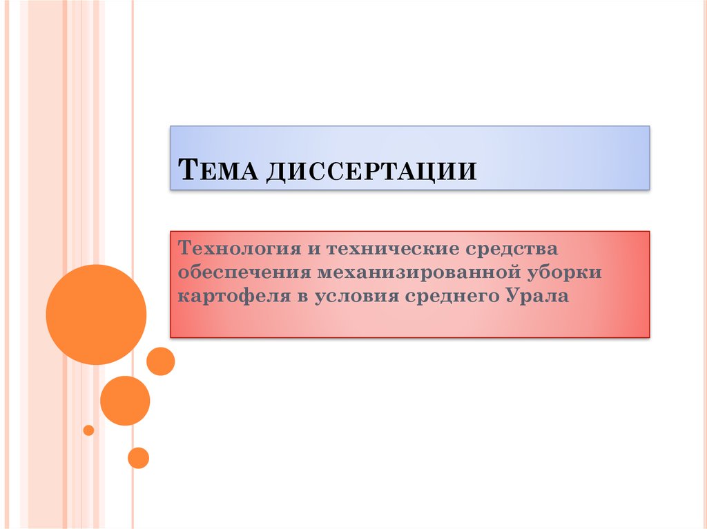 ТЕМА ДИССЕРТАЦИИТехнология и технические средства