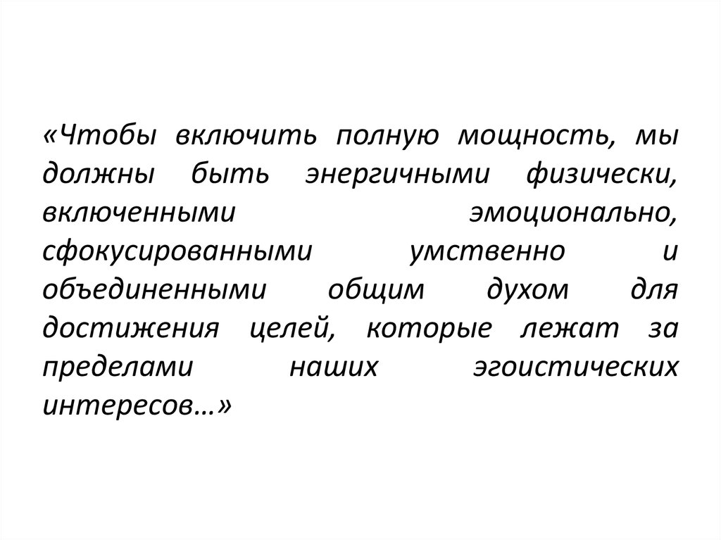 «Чтобы включить полную мощность, мыдолжны быть энергичными физически,