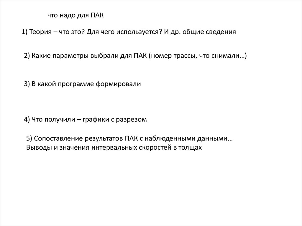 2) Какие параметры выбрали для ПАК (номер трассы, что снимали…)