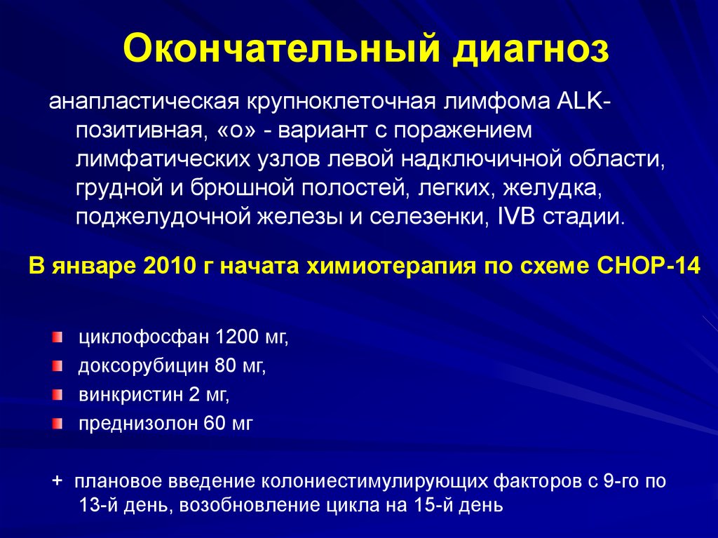 В январе 2010 г начата химиотерапия по схеме CHOP-14