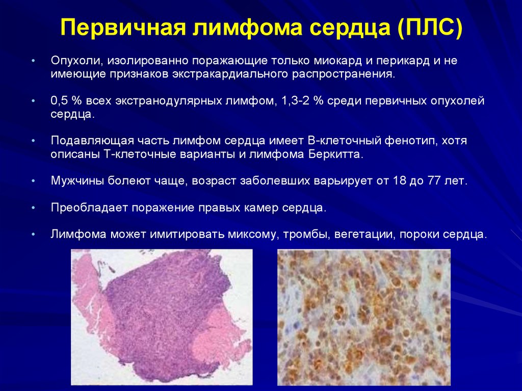Первичная лимфома сердца (ПЛС)Опухоли, изолированно поражающие только миокард и перикард и не