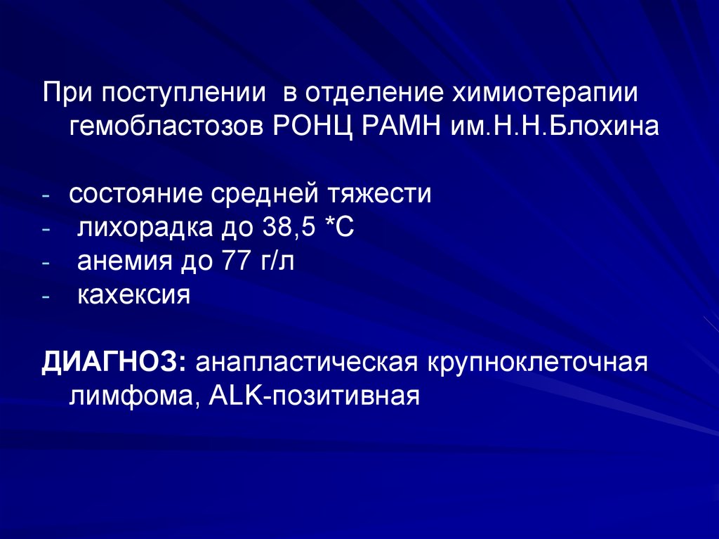 При поступлении в отделение химиотерапиигемобластозов РОНЦ РАМН им.Н.Н.Блохина
