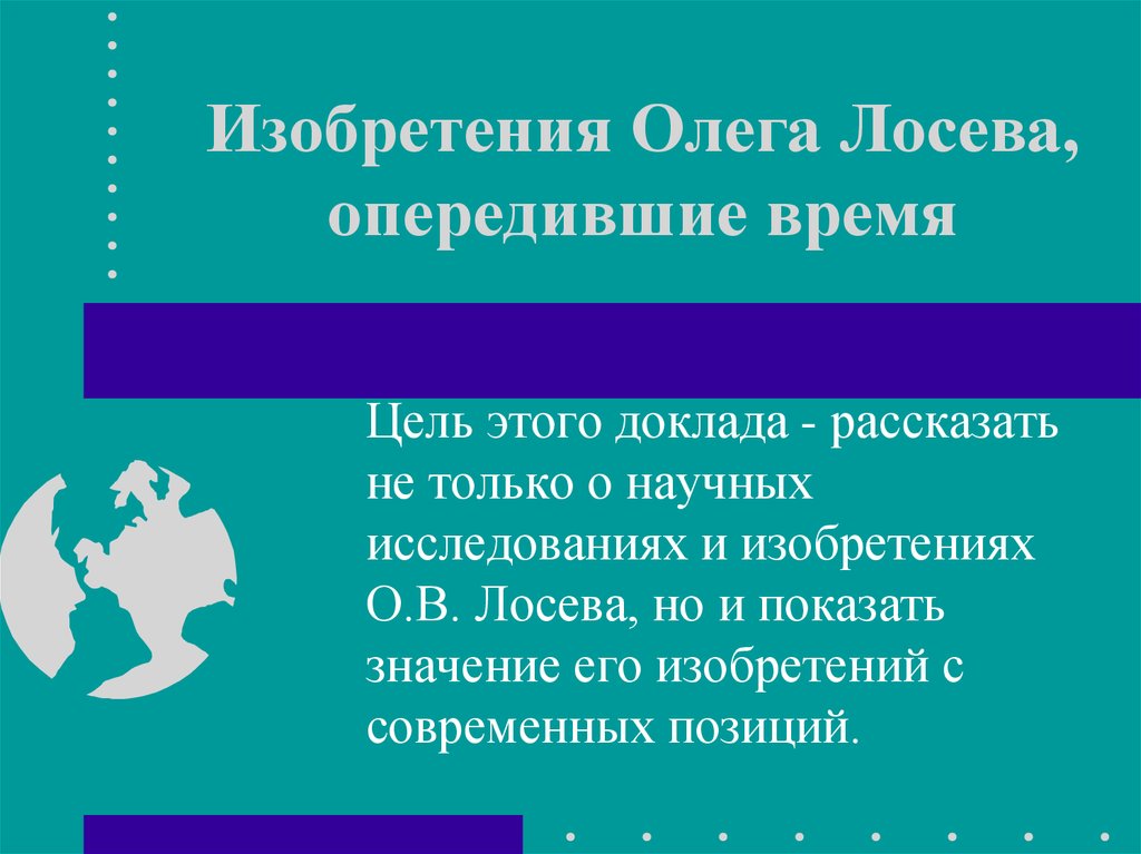 • Лосев Олег Владимирович родился 9 мая1903 вТвери. В 1920 поступил в Нижегородскую