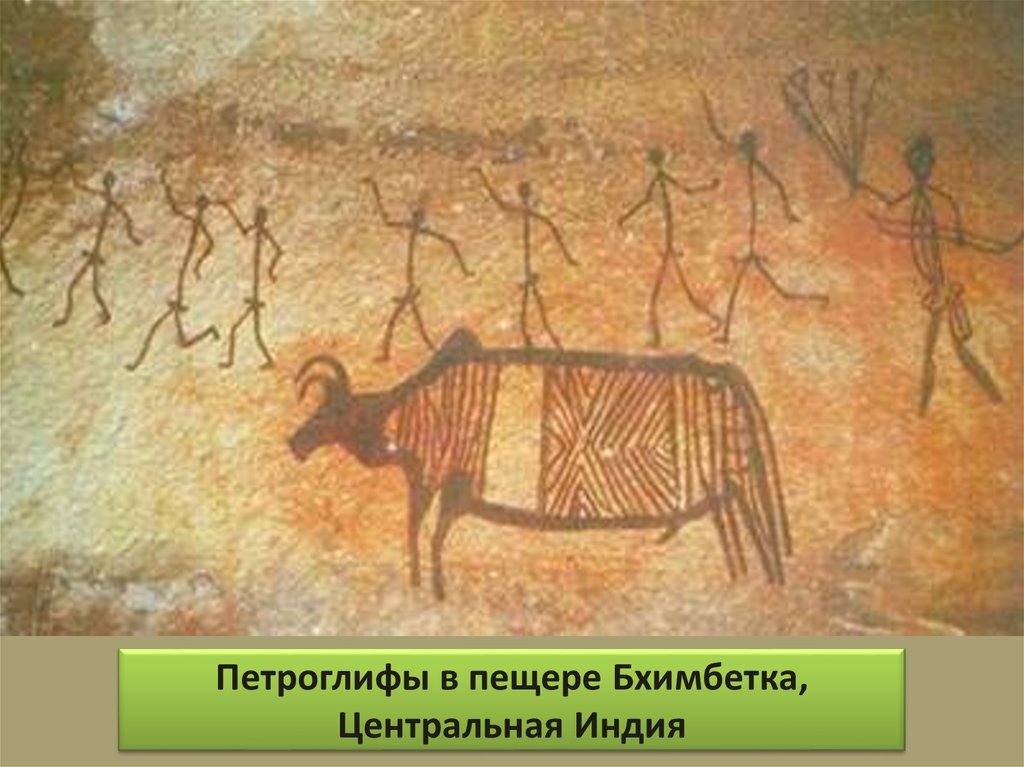 Петроглифы в пещере Бхимбетка,Центральная Индия