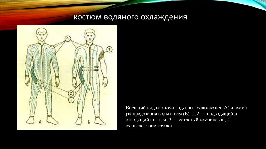костюм водяного охлажденияВнешний вид костюма водяного охлаждения (А) и схема