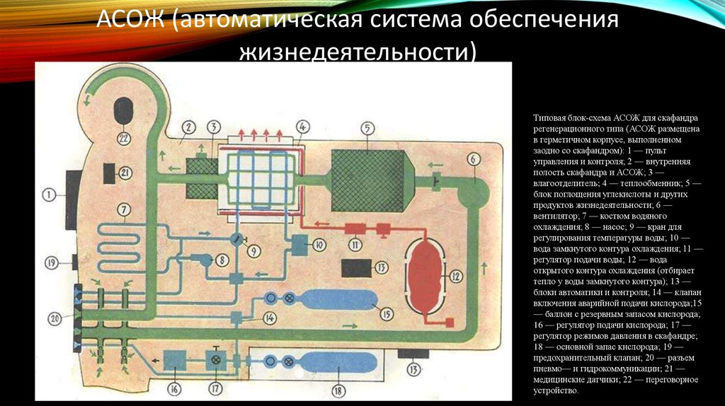 Типовая блок-схема АСОЖ для скафандра