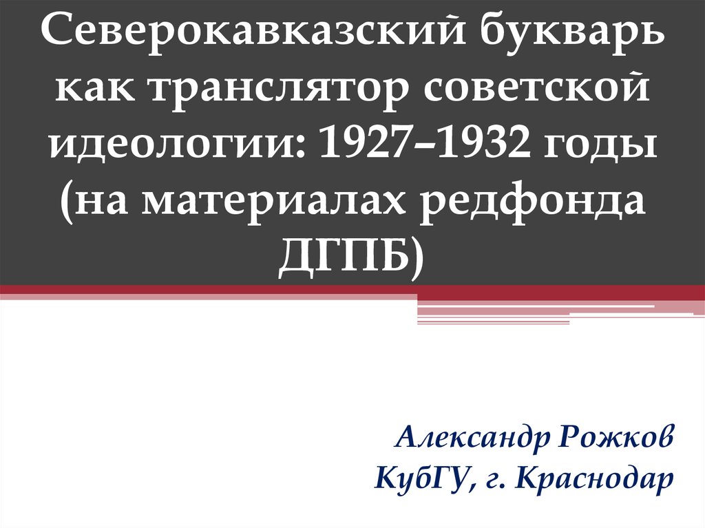 Северокавказский букварь как транслятор советской идеологии: 1927–1932 годы (на материалах редфонда ДГПБ)