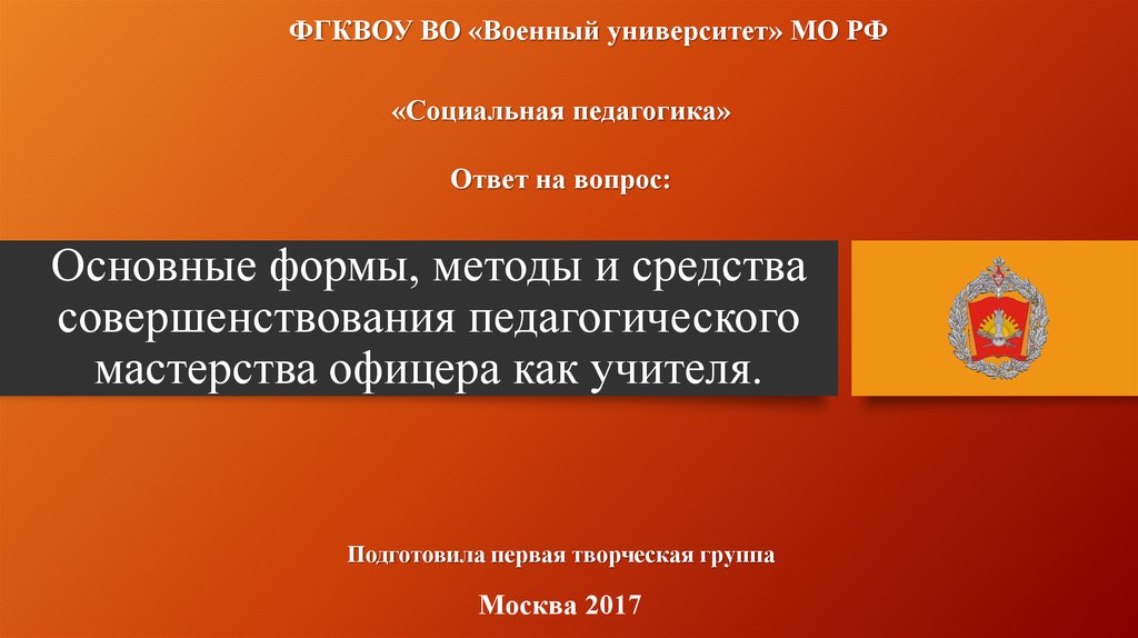 1. Основные формы, методы и средства совершенствования педагогического мастерства офицера как учителя.