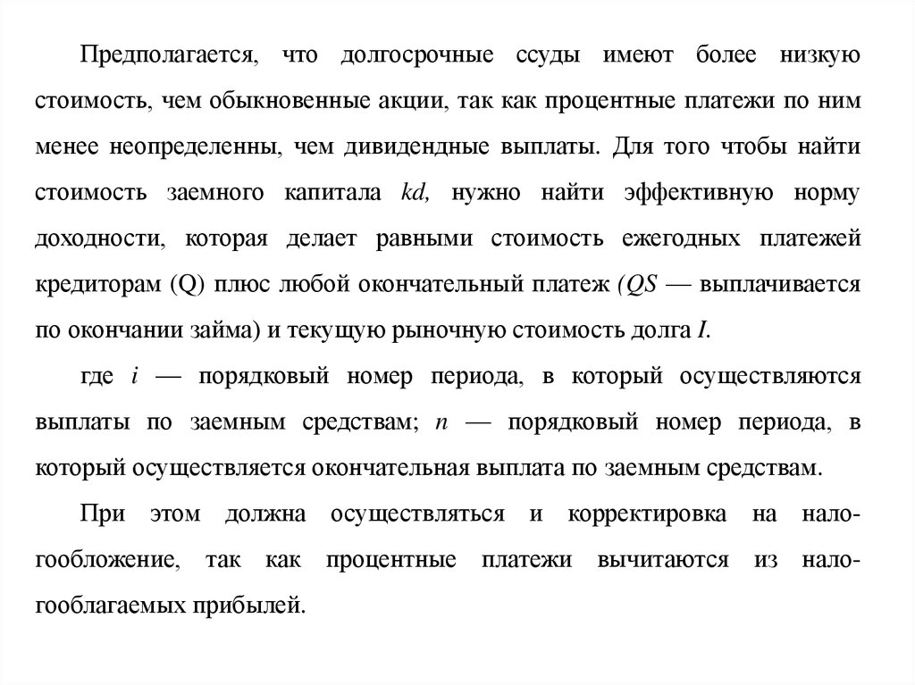 капитала; rd — стоимость заемного капитала (процентная ставка по кредиту