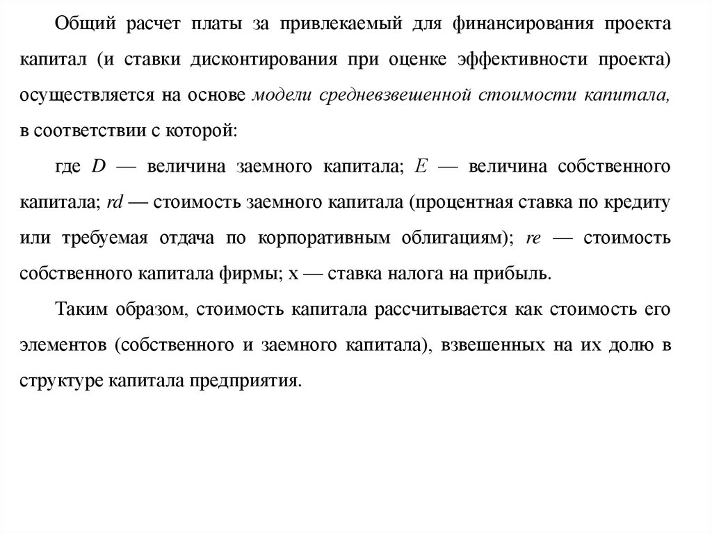 Таким образом, стоимость капитала рассчитывается как стоимость его