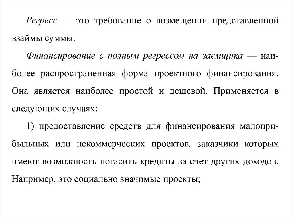 Финансирование с полным регрессом на заемщика — наиболее распространенная форма проектного финансирования.