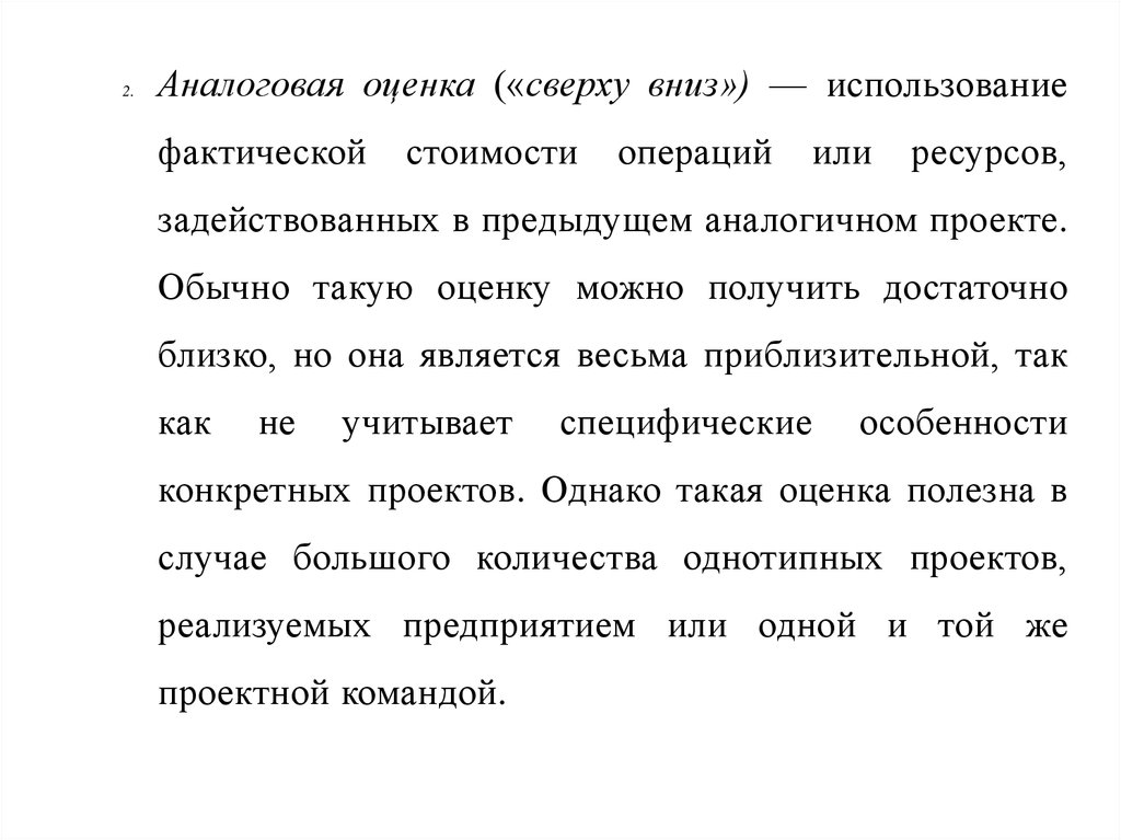 2.Аналоговая оценка («сверху вниз») — использование