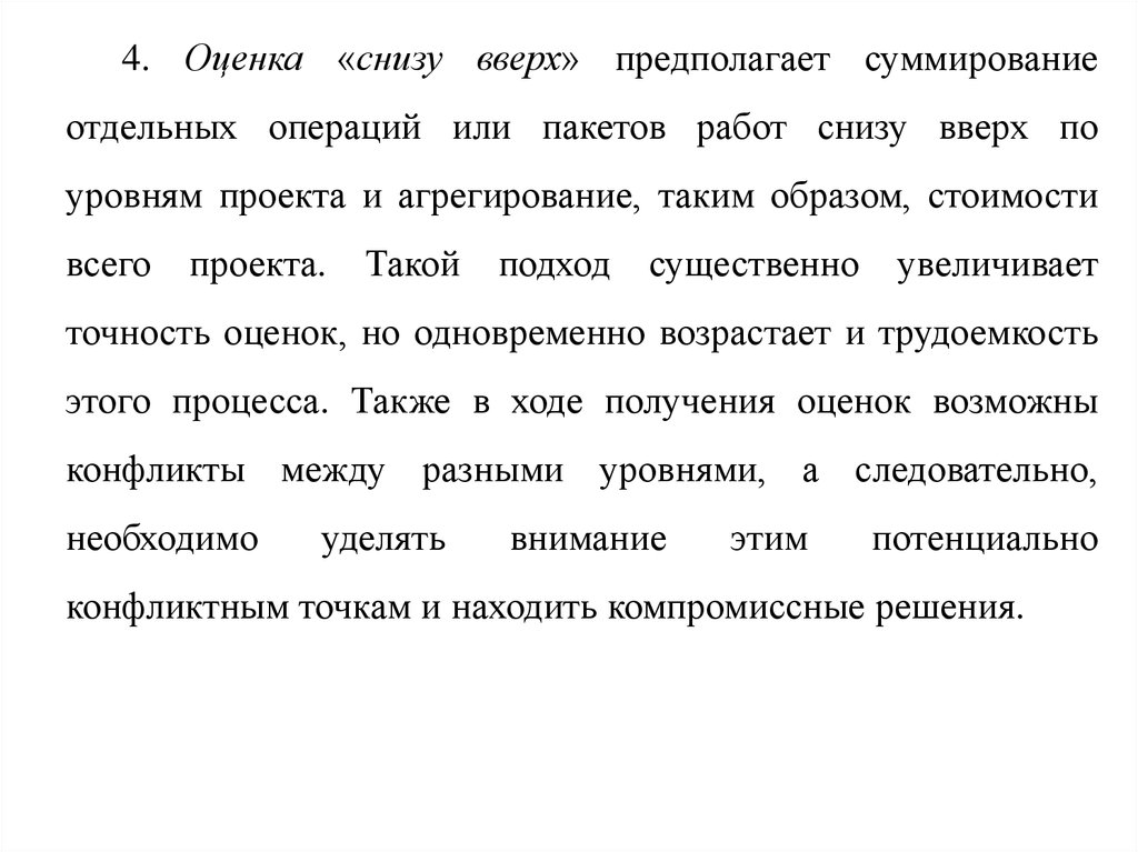 4. Оценка «снизу вверх» предполагает суммированиеотдельных операций или пакетов работ снизу вверх по