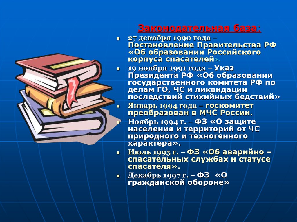 Июль 1995 г. – ФЗ «Об аварийно –