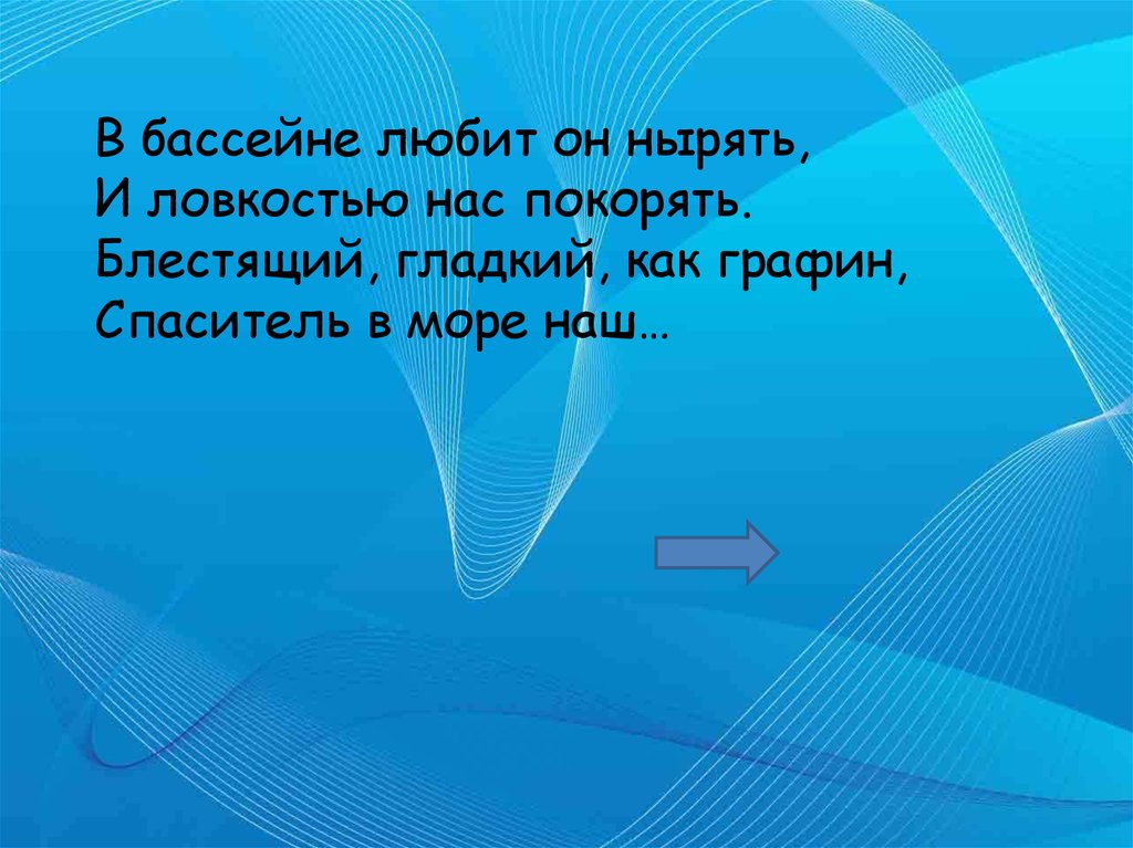 В бассейне любит он нырять,И ловкостью нас покорять.