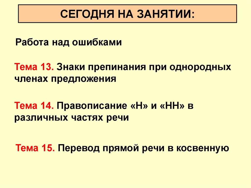 СЕГОДНЯ НА ЗАНЯТИИ:Работа над ошибками