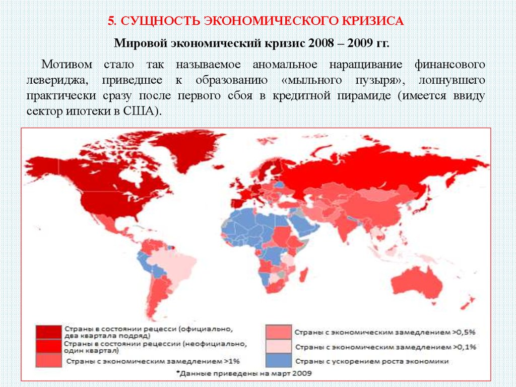 5. СУЩНОСТЬ ЭКОНОМИЧЕСКОГО КРИЗИСАМировой экономический кризис 2008 – 2009 гг.