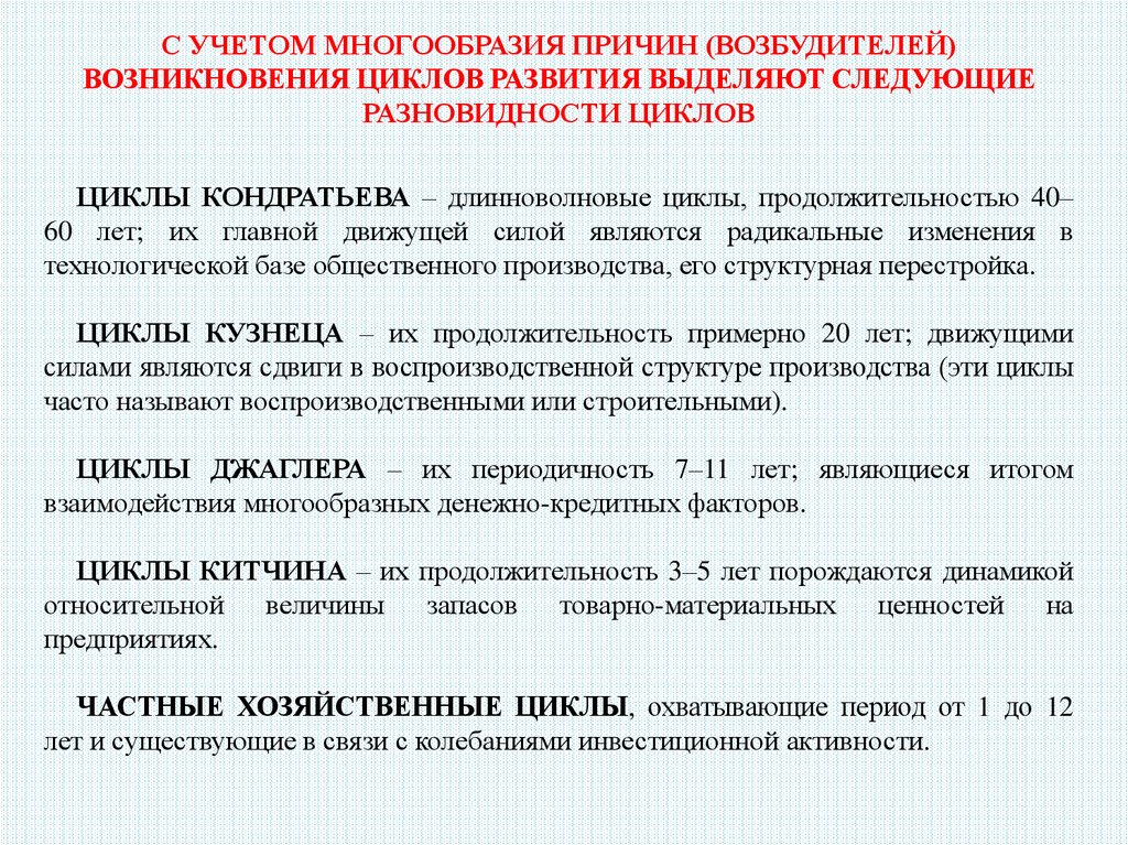С УЧЕТОМ МНОГООБРАЗИЯ ПРИЧИН (ВОЗБУДИТЕЛЕЙ)ВОЗНИКНОВЕНИЯ ЦИКЛОВ РАЗВИТИЯ ВЫДЕЛЯЮТ СЛЕДУЮЩИЕ