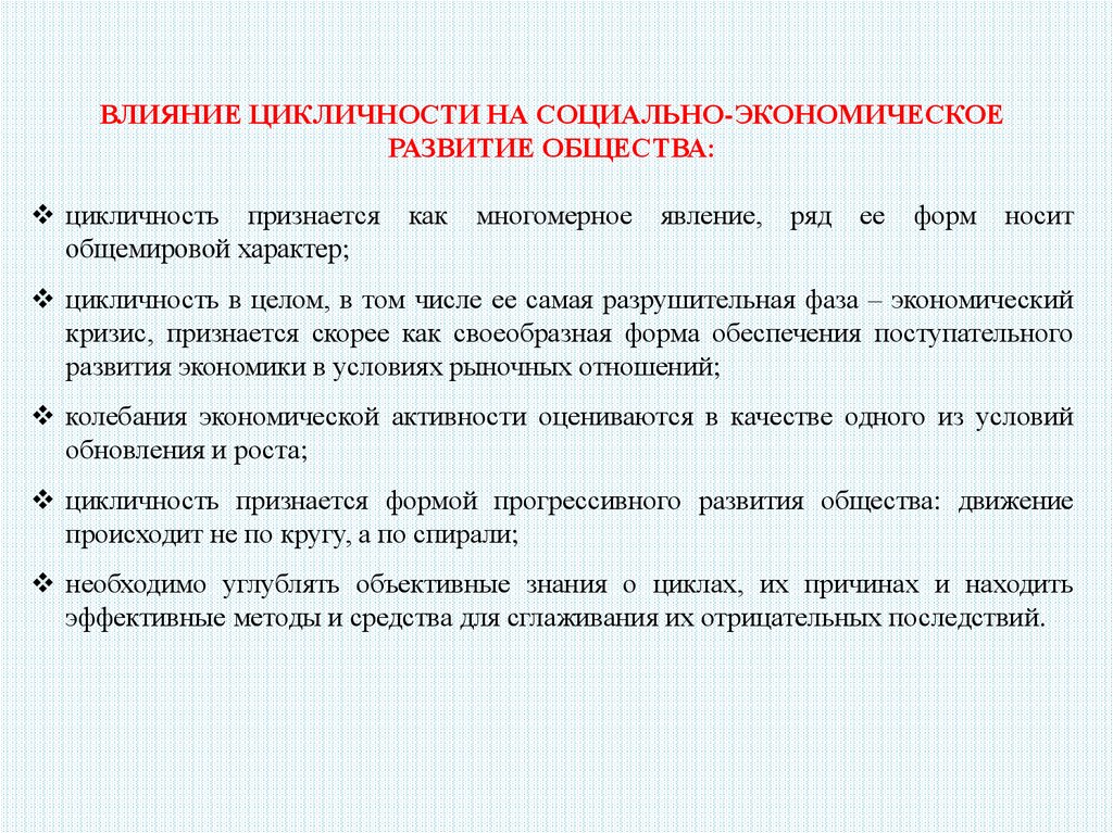 ВЛИЯНИЕ ЦИКЛИЧНОСТИ НА СОЦИАЛЬНО-ЭКОНОМИЧЕСКОЕРАЗВИТИЕ ОБЩЕСТВА:
