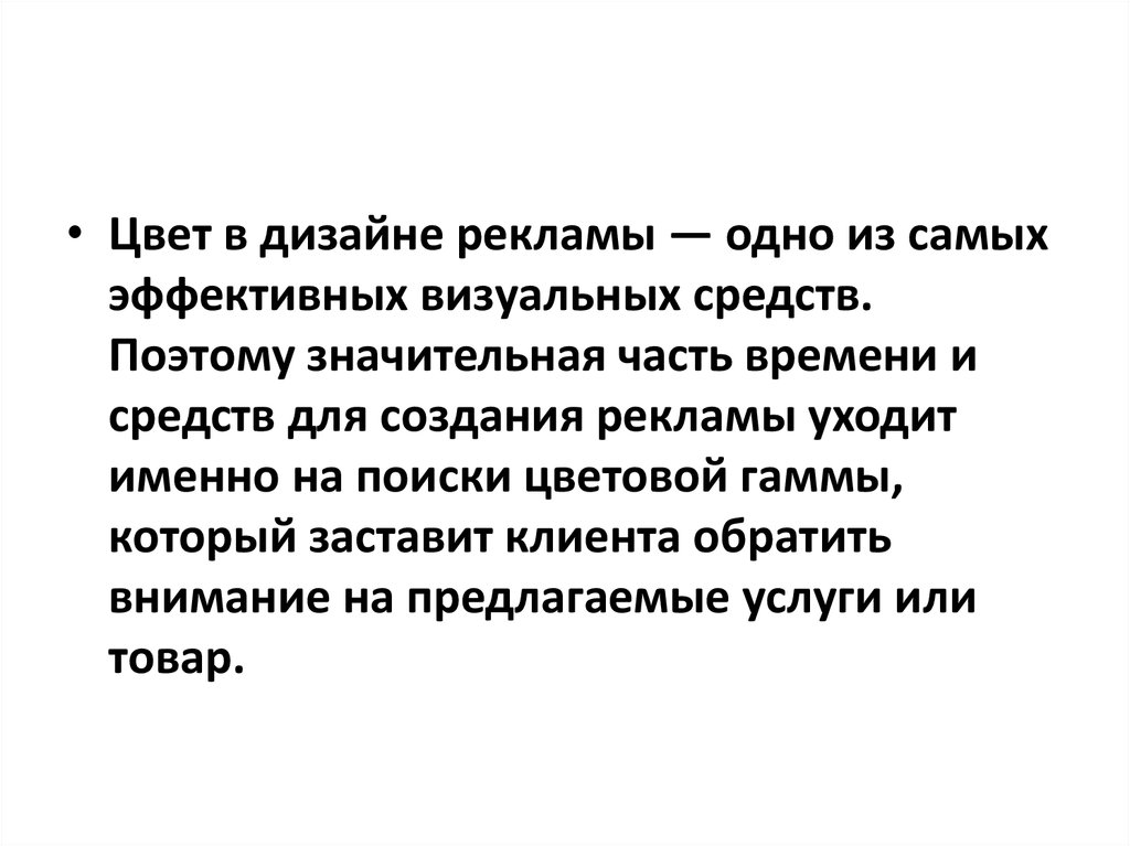• Цвет в дизайне рекламы — одно из самыхэффективных визуальных средств.