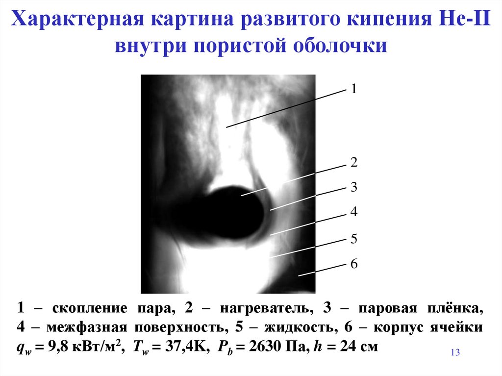 Характерная картина развитого кипения Не-IIвнутри пористой оболочки