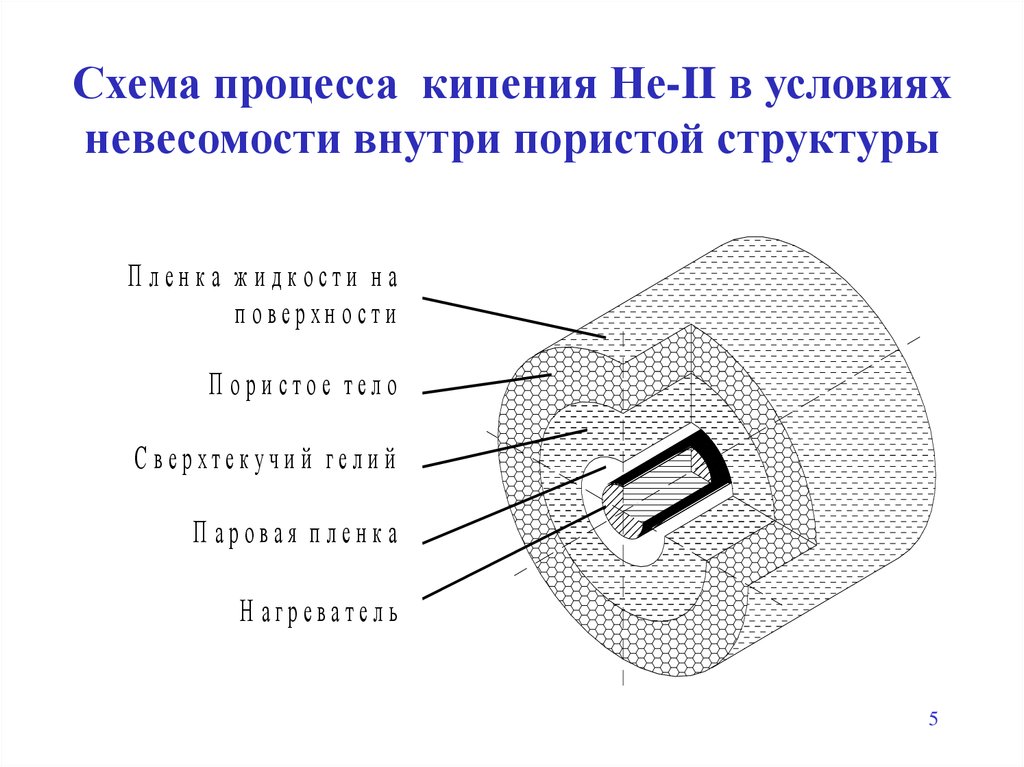 Схема процесса кипения Не-II в условияхневесомости внутри пористой структуры