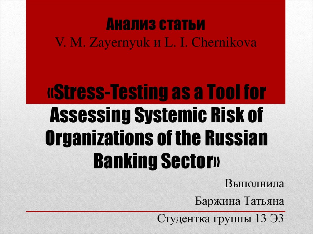 1. «Stress-Testing as a Tool for Assessing Systemic Risk of Organizations of the Russian Banking Sector»