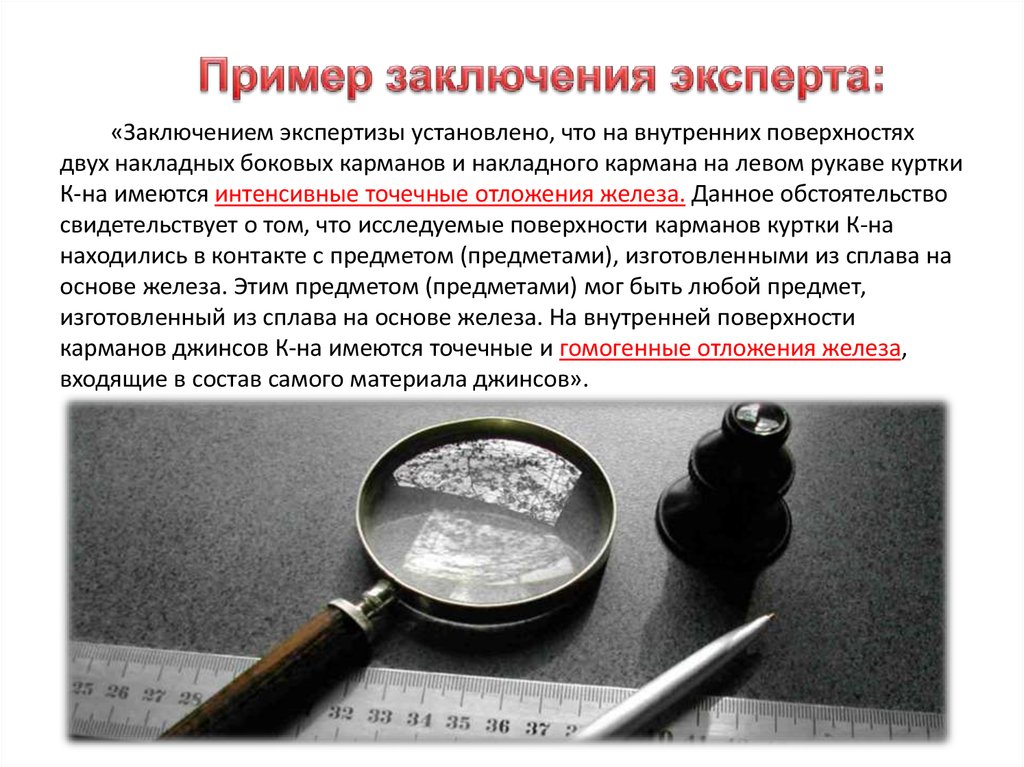 карманов джинсов К-на имеются точечные и гомогенные отложения железа,